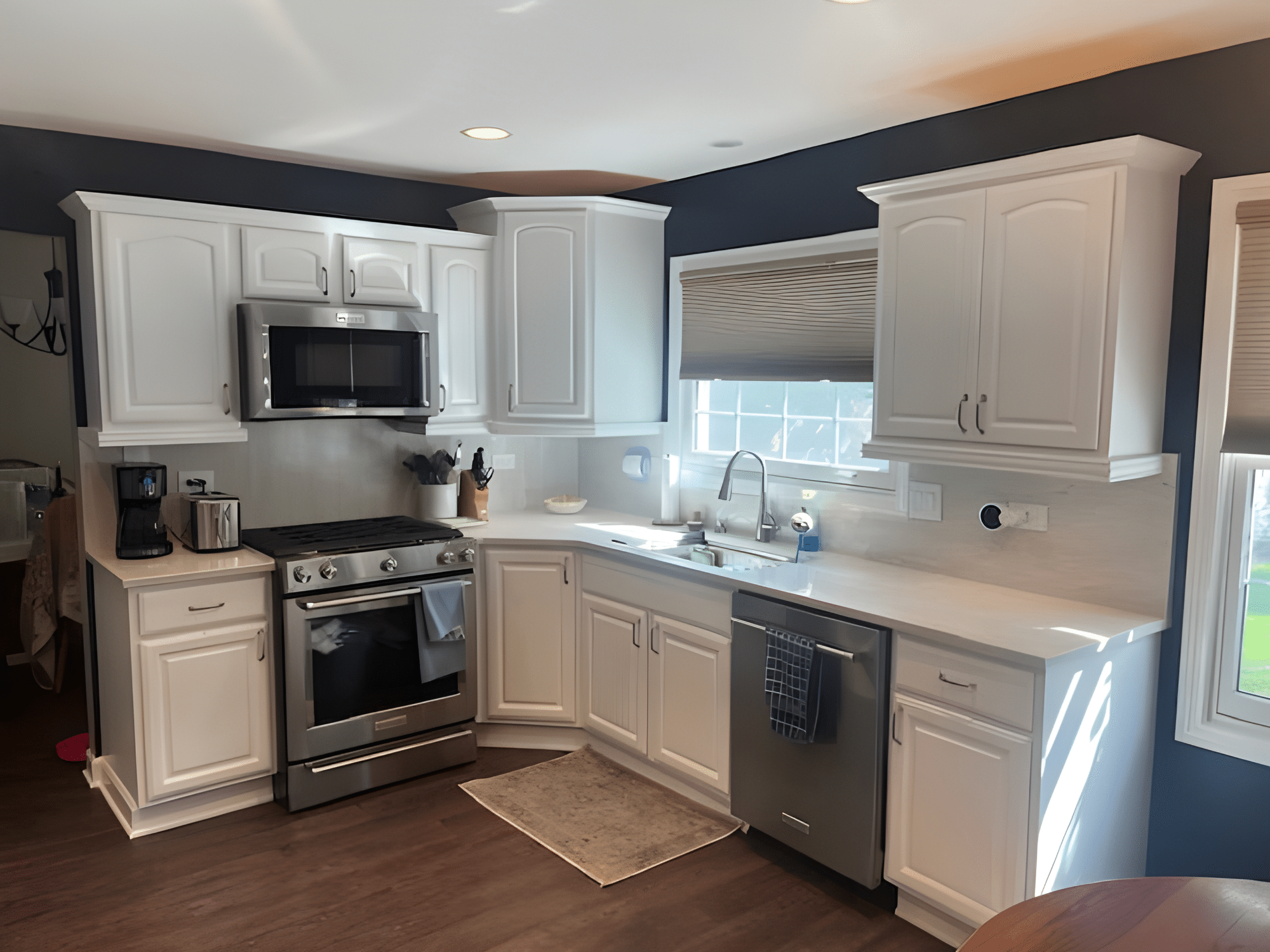 The finished kitchen exceeded Steve’s expectations. The grain-filled, glassy cabinet finish delivered a high-end, furniture-quality look that transformed the entire space. The Chantily Lace color brightened the kitchen and gave it a clean, contemporary feel without losing the warmth of a family home.