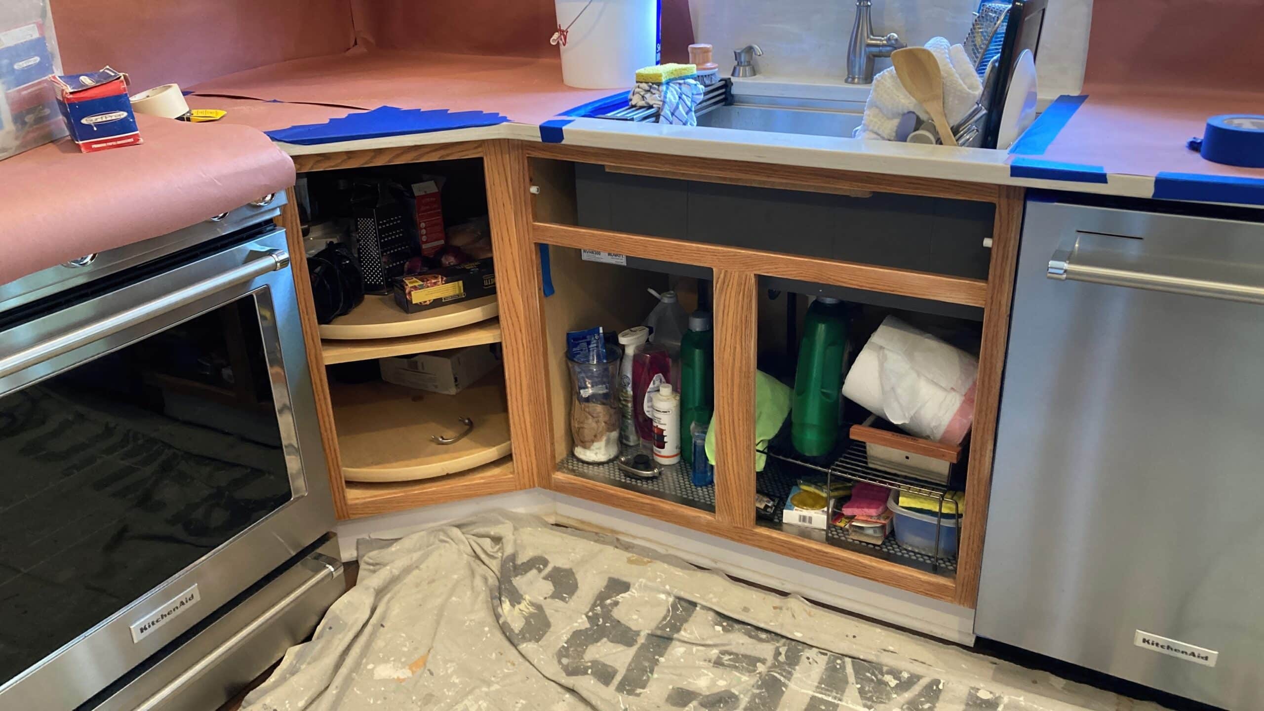 Powers Painting & Decorating completed a professional kitchen cabinet painting project for Steve’s home in Schaumburg, IL, transforming dated cabinets into a stunning, factory-quality finish. The 5-day project included cabinet refinishing with grain filling, premium Italian wood coatings, and a complete kitchen wall refresh—breathing new life into this mid-1980s suburban home.