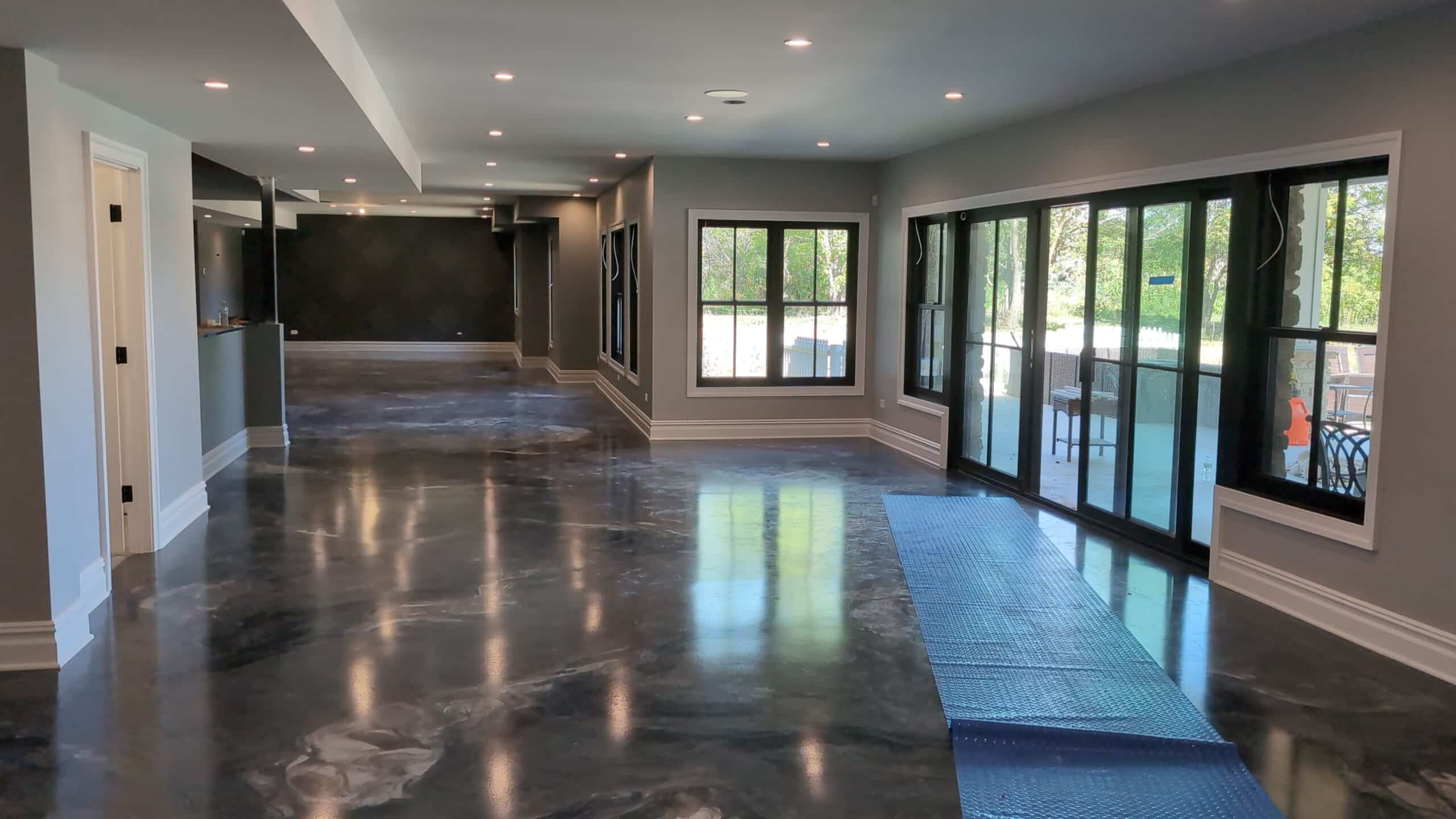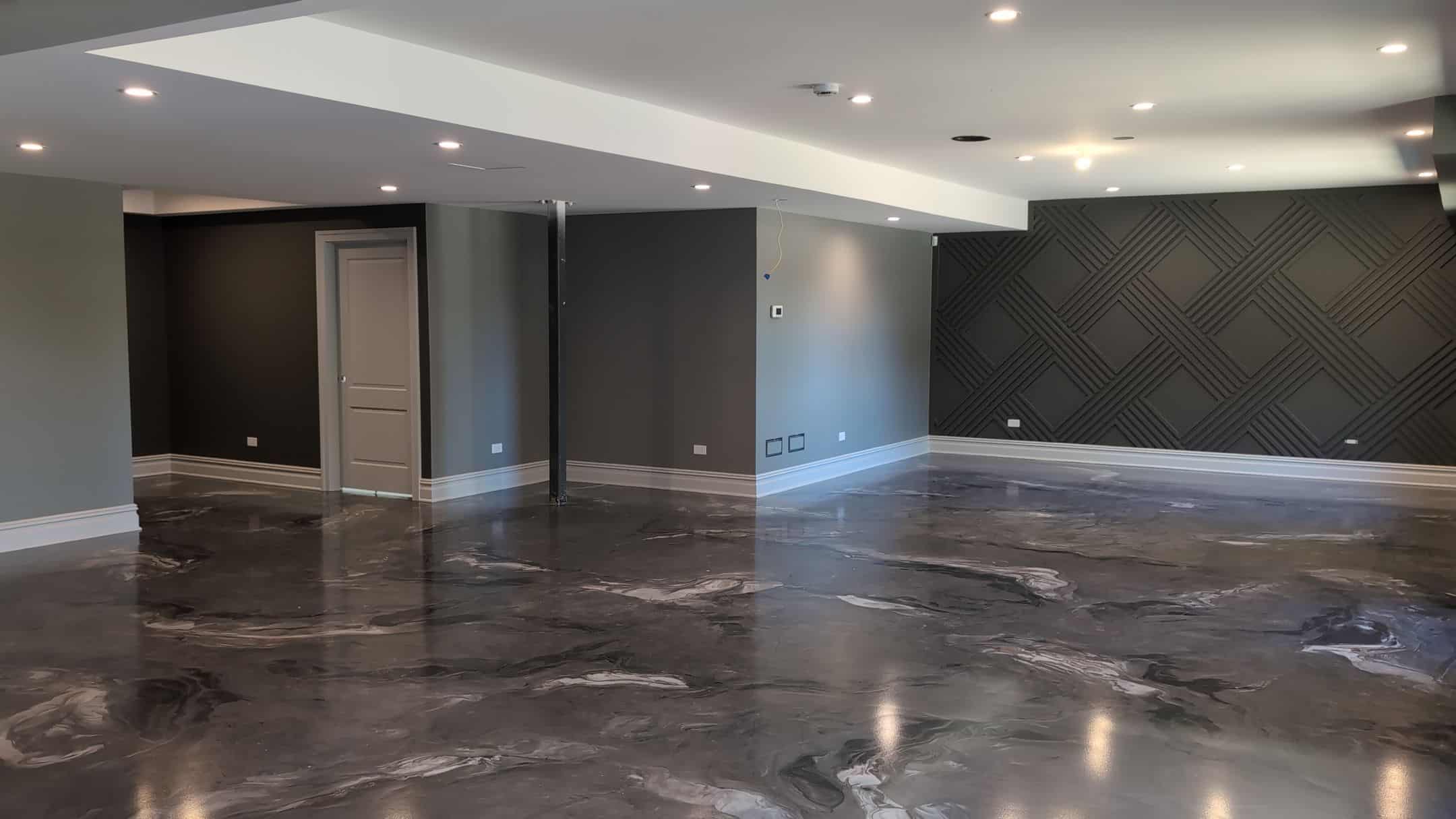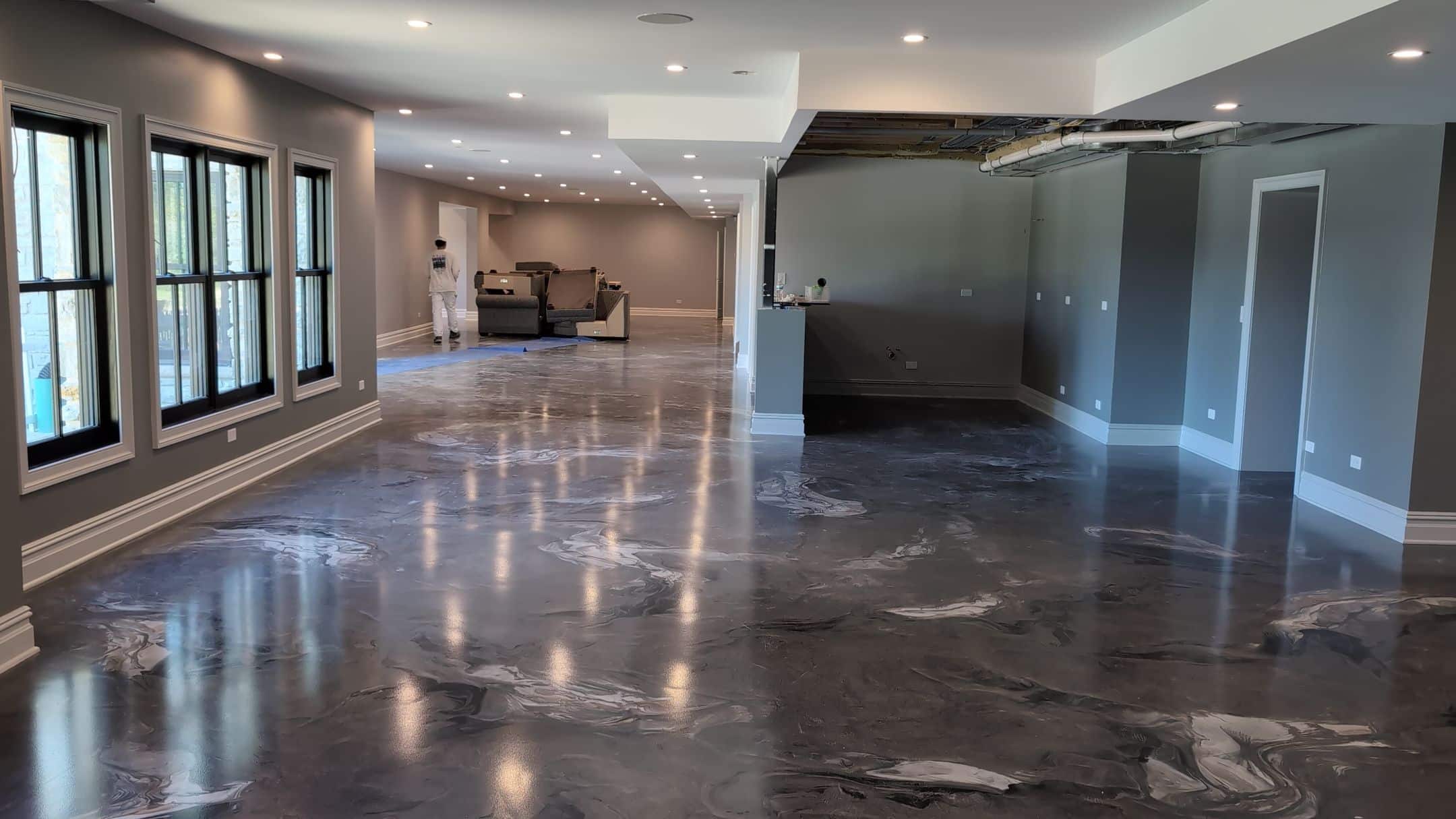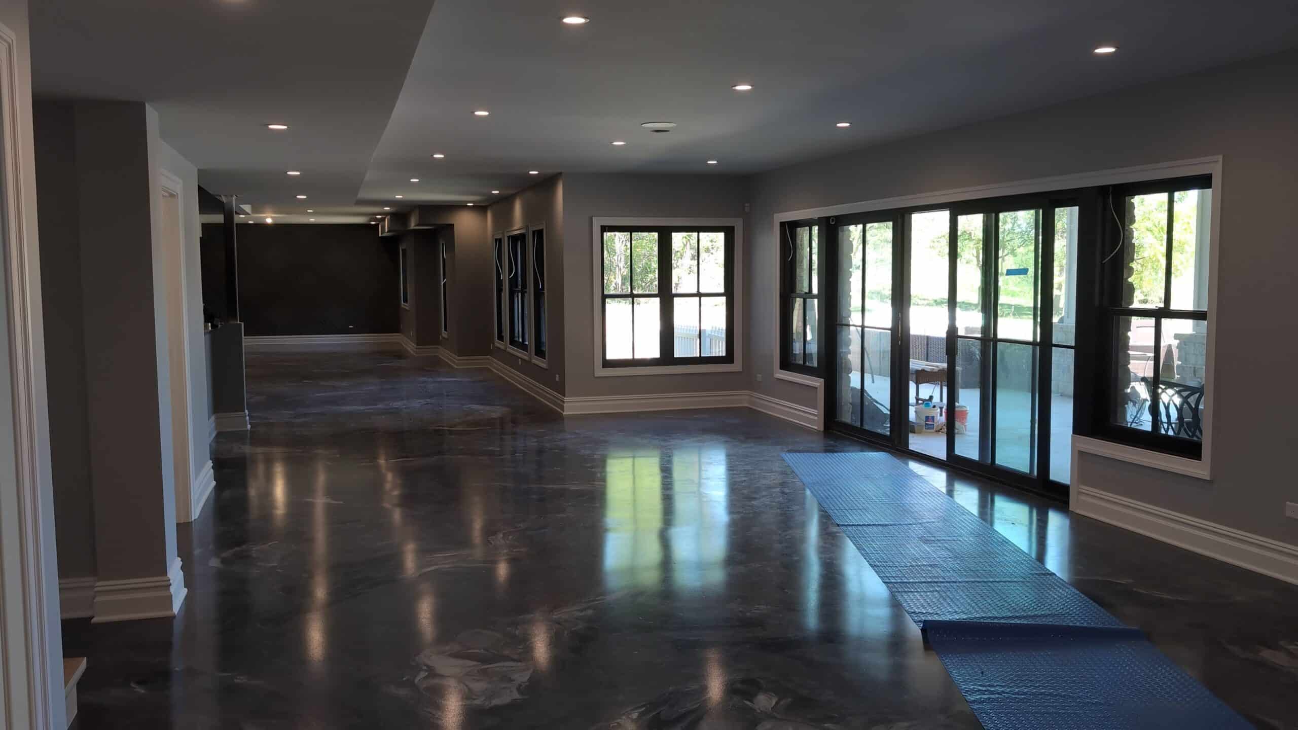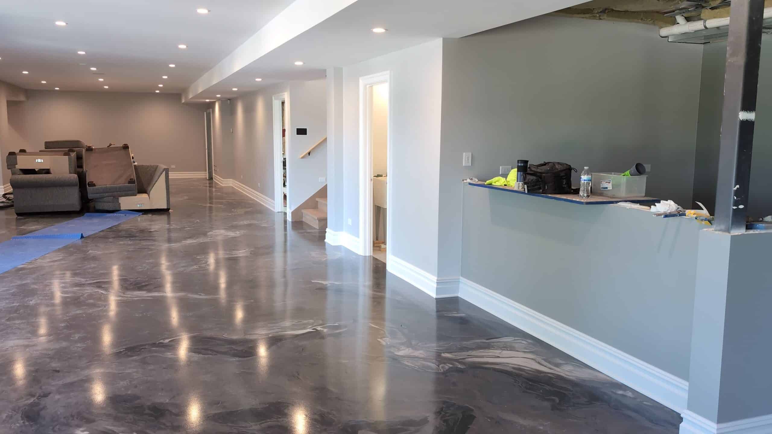 - Masking & Protection: Carefully masked floors, windows, doors, and fixtures throughout the basement to maintain sharp lines and a clean worksite.
